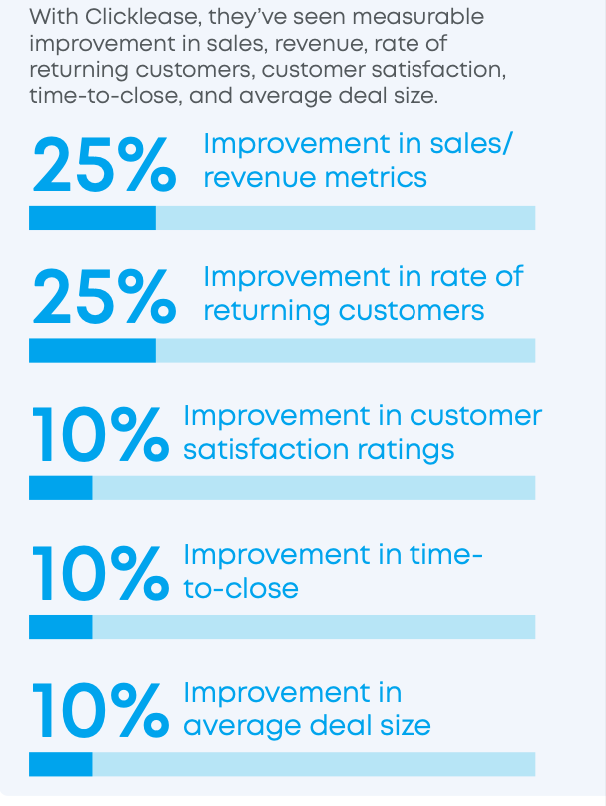 "Clicklease has helped us grow our business [and] has driven revenue growth in my organization." [It] has opened up a new customer base I didn't have access to before."